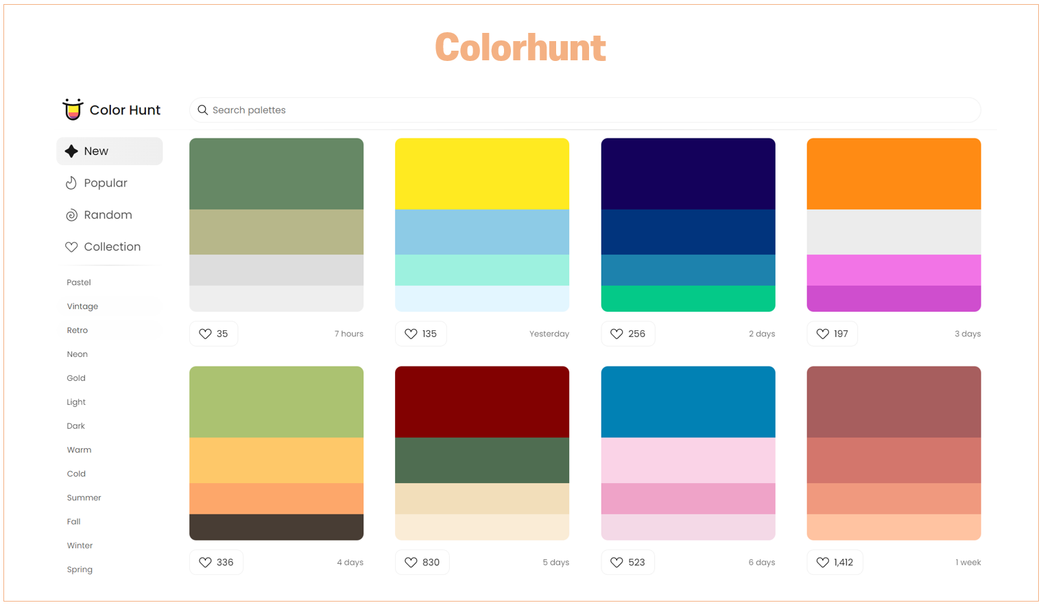 Discover the newest hand-picked color palettes of Color Hunt. Get color inspiration for your design and art projects.